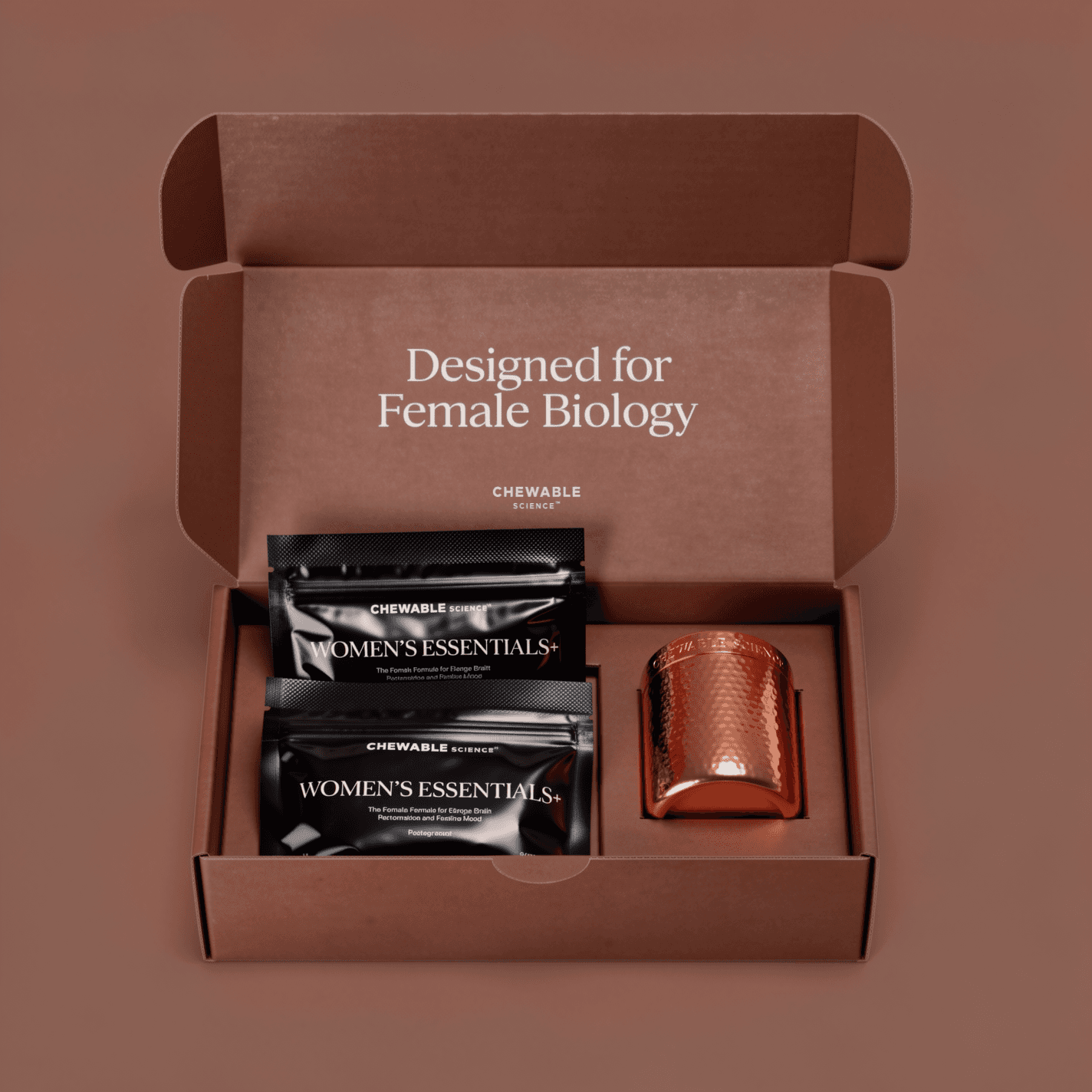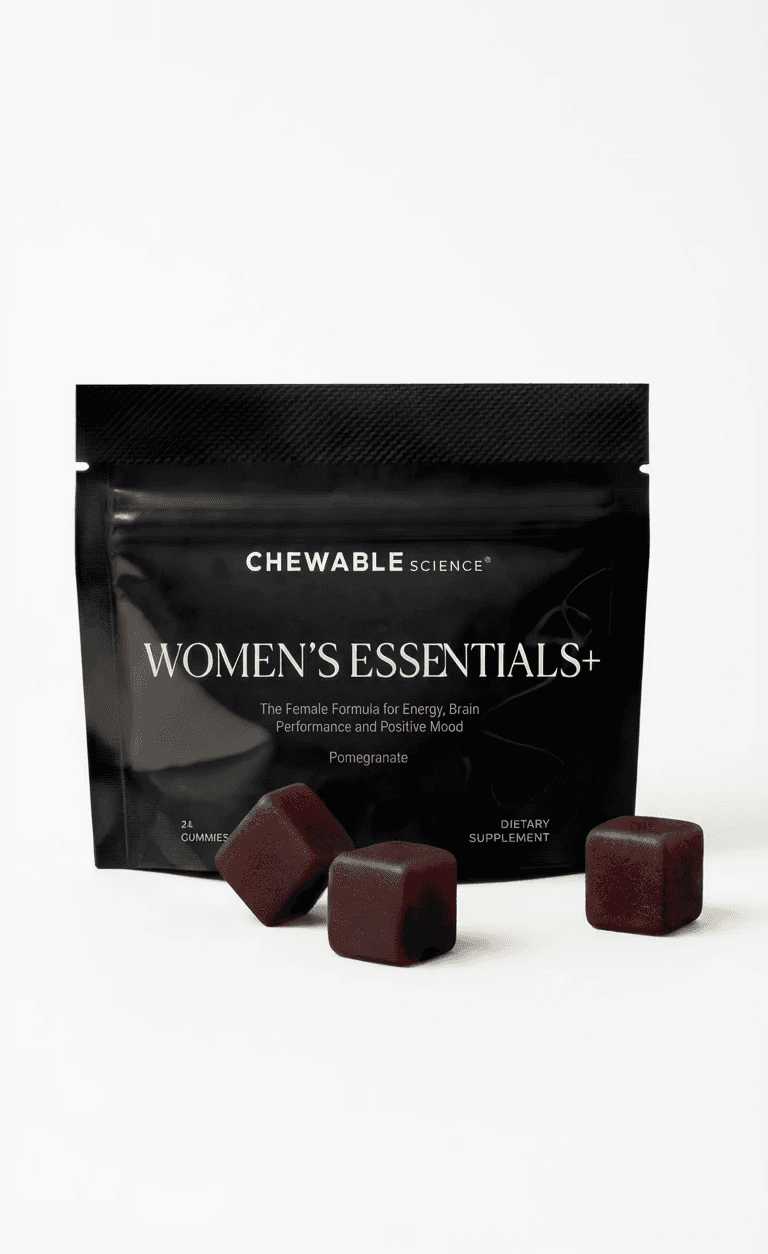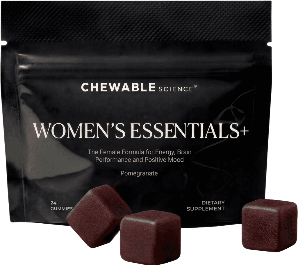 Women's Essentials+ targets the cellular-level pathways unique to the female body. Gut health. Hormonal balance. Nervous system resilience. 4 gummies a day, working where it matters — so you feel the difference from the inside out.